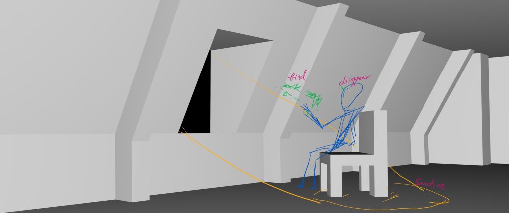- S3.W1/2This term I am going to produce some small scenes with a high degree of finish. In the first scene is that a disabled girl gradually disappears and becomes birds …