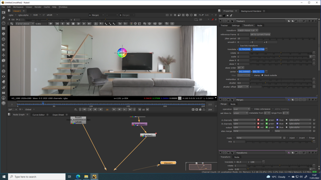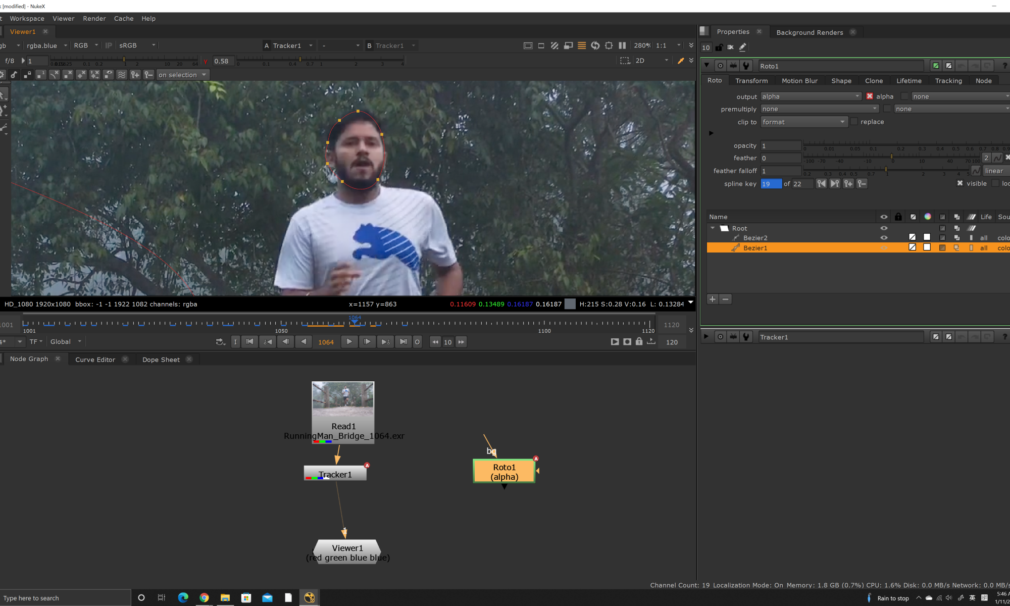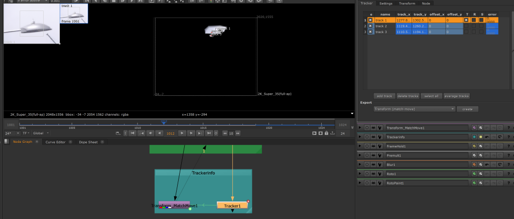 During the week I experimented with Nuke’s roto node, roto paint node and tracker node And try to pass the information from the tracker node to the roto mask, so that the roto mask can follow the object’s movement.