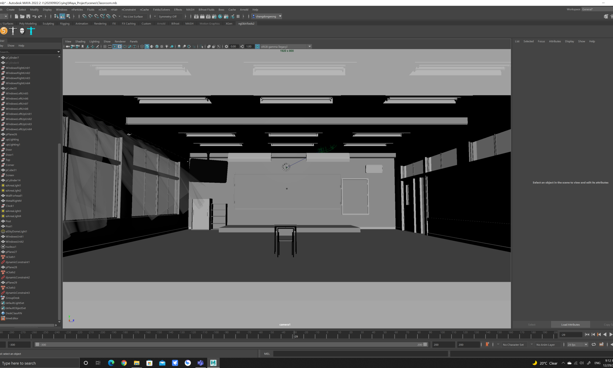 In this lesson I tried to build a similar interior environment, drawing detailed replacement maps and normal maps. I also used Maya’s fabric system to simulate a wind field.