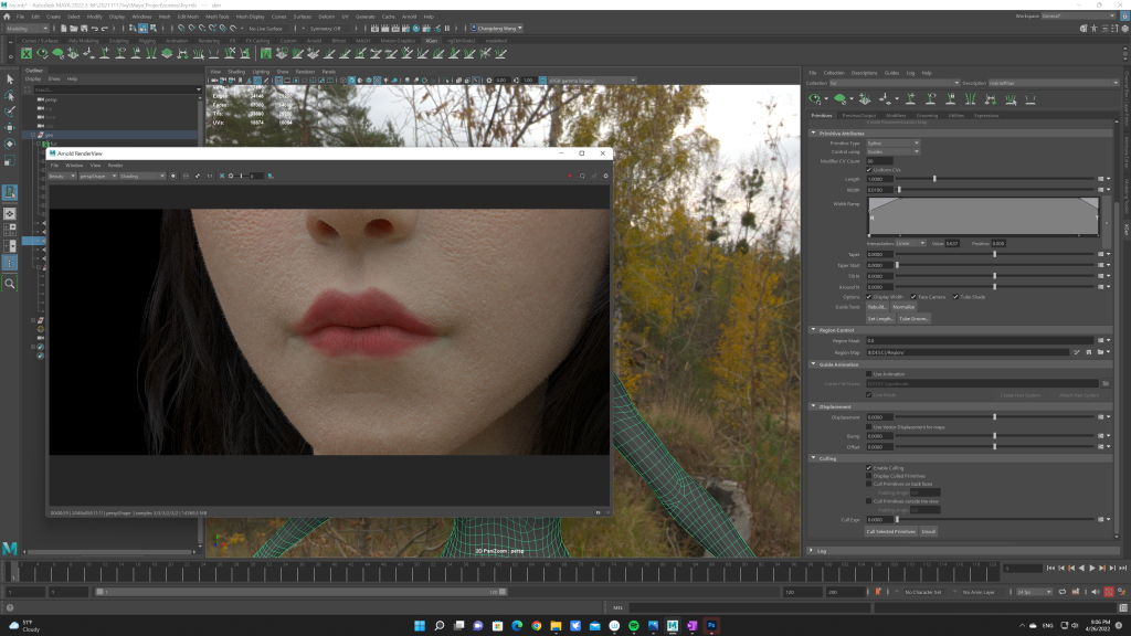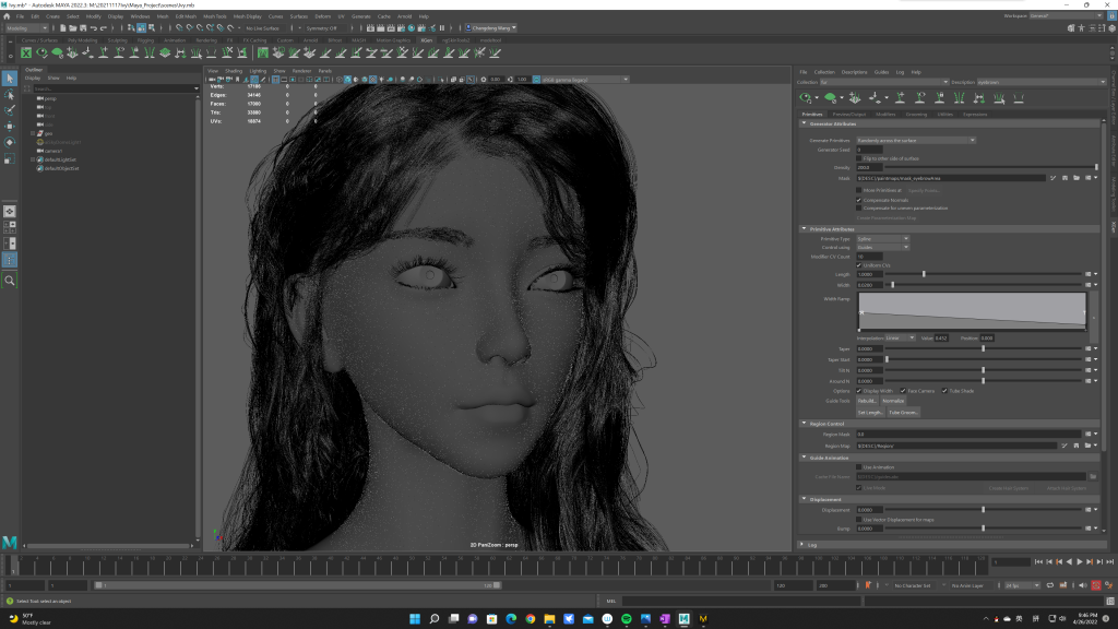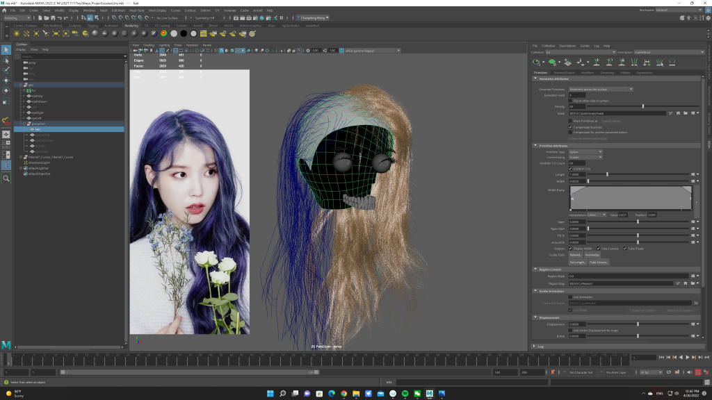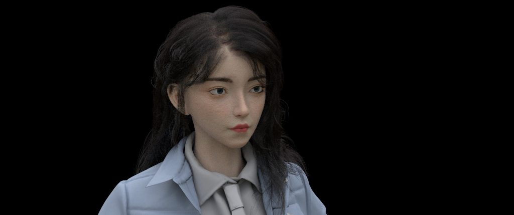 This term I am going to produce some small scenes with a high degree of finish. In the first scene is that a disabled girl gradually disappears and becomes birds to fly away. I don’t find a similar scene on the web, however, it is like some particle disappear fx. For the Animation part, I have recorded a video by myself which is only around 3 seconds. I have rebuilt and fixed my old model about the girl like below:
