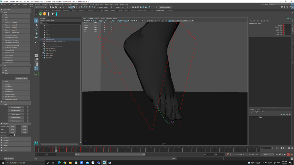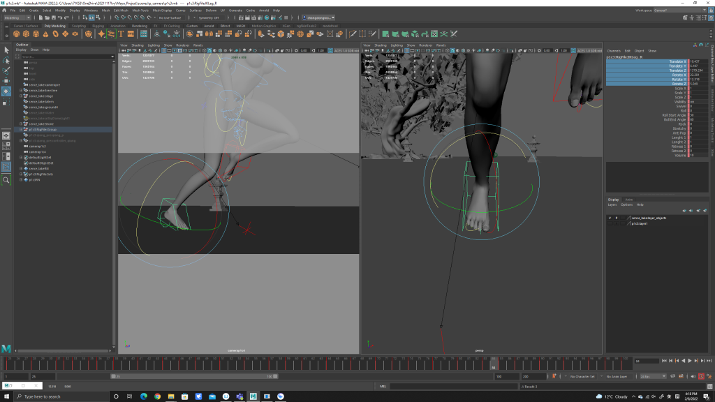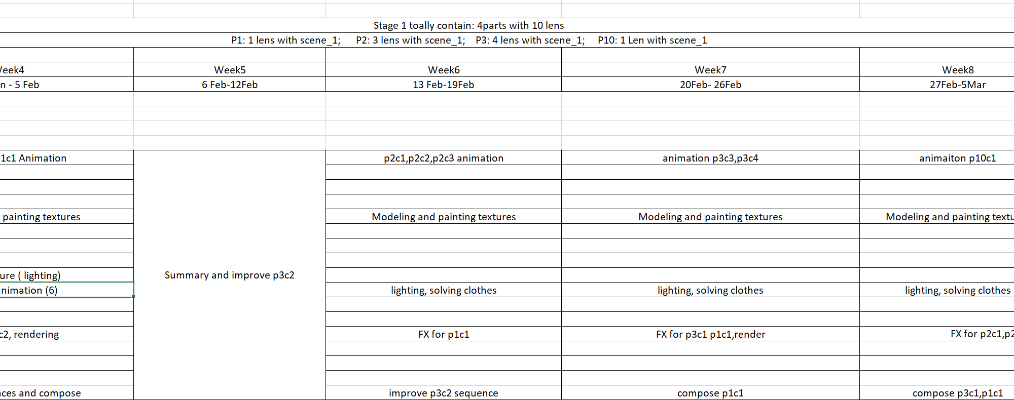 This week We finished the p1c3,p1c4,p3c3 animation and We are going to finish p1c2, and p4 animation. My partner YingYue Feng and I always talk how could we improve animation detail such as blow. Because we have an extreme close lens for the foot, we have to handle the toe rotation well.