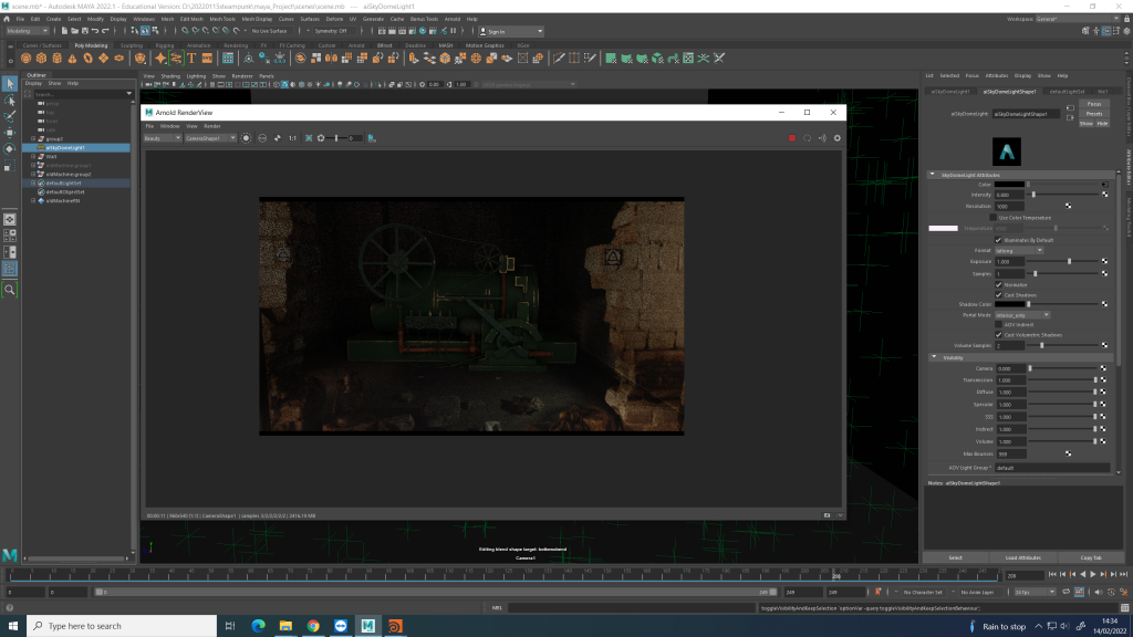 This week, I have rendered all factors in the Arnold render. I used three rectangle light to make the shadow of the old machine catch the raw sequence. one more important thing is the color space. When the rendering finished the default color space is srgb, we have to change the setting in nuke same as Arnold.