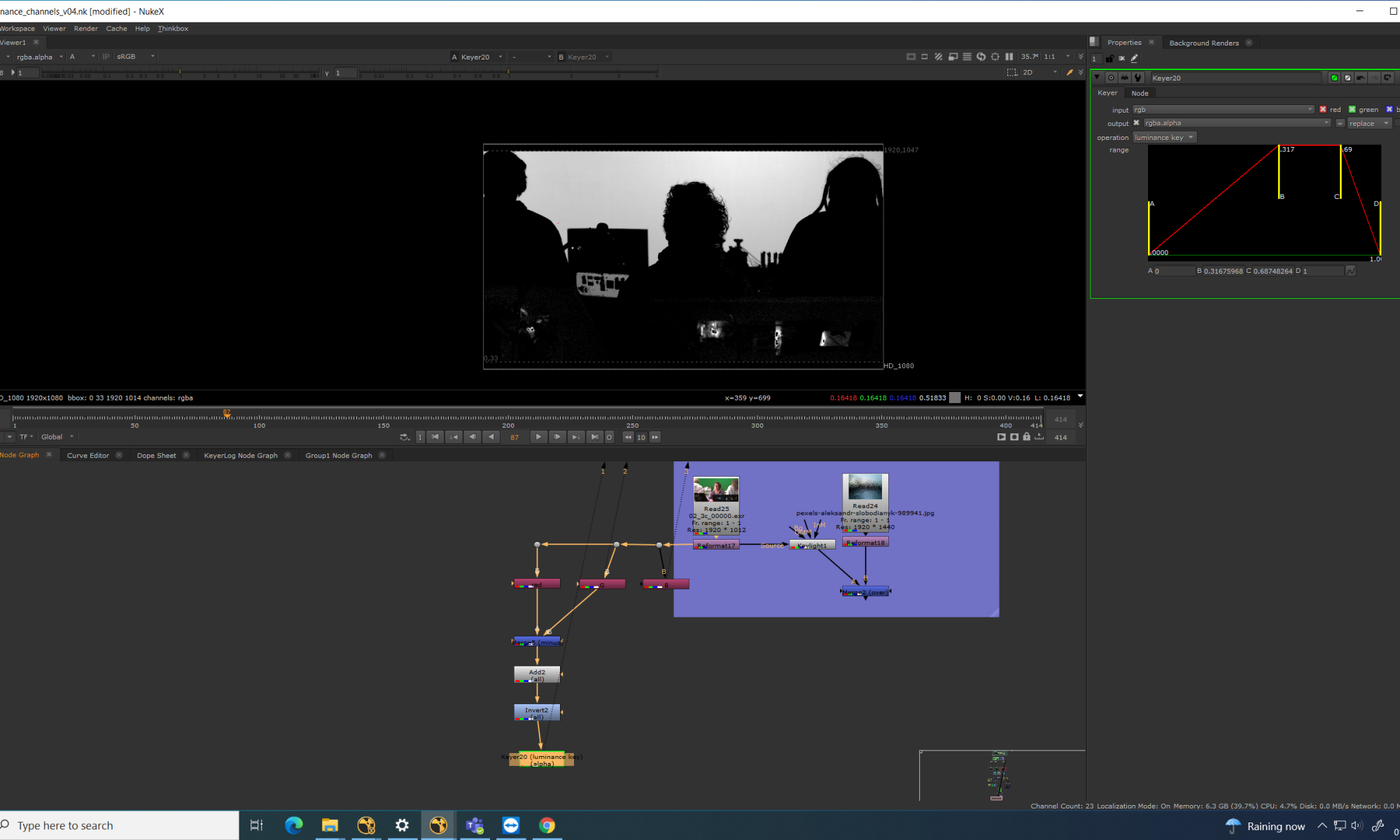 This week I learned somethings about the foundation of green screen. Some basic information about selecting the specific areas in different ways. We have learned about luminance, saturation and hue. The main idea of the colourspace transfer is similar with the colour lab in photoshop and so on. In addition to this, we learned some simple techniques to process different channels to obtain a specific areas through basic arithmetic.