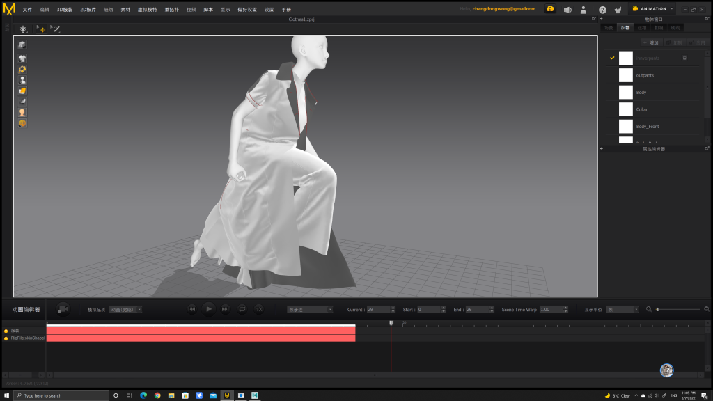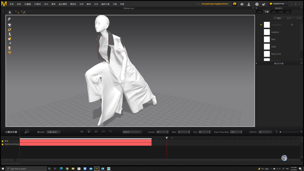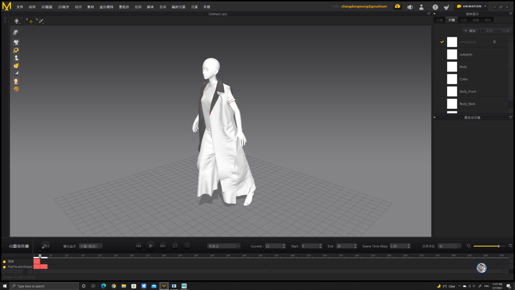 Because one of our members quit our group, we need to share her jobs such as the clothe and some visual effects about clothes. I am designing new clothes for the girl because the old version almost can not be used. Before that, I also found some problems with skin weight and I start to solve them.